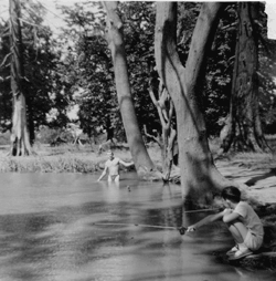 The pictures above show Jane Monksfield's father swimming in the pond in about 1958, give or take a few years. Interesting to note the amount of trees around the pond. I swam in the pond in the early 60's and it looked much the same.