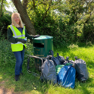 After having to cancel recent FODP Litterpicks due to bad weather we were graced with brilliant sunshine last Saturday for our latest scheduled Litterpick. It was attended by 5 hardy Volunteers, sun cream and hats were the order of the day. A special mention to one of the Volunteers , a very youthful looking 79 year old Margaret Bearman (pictured).